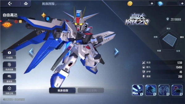 自由高达具备高输出与强适用性的特点,无论是新手过渡阶段还是游戏中后期,它都是核心机体之一,玩家可通过挑战主线关卡来获取该机体。