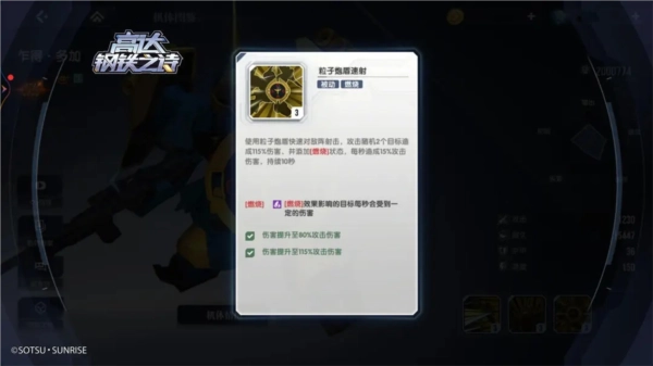 以自由高达为例,它的主动技能【全炮门发射】在攻击处于“燃烧状态”的敌人时,能获得额外的伤害加成,不过这需要通过研发机体并提升星级来解锁。要是目标被这个技能直接击坠(也就是耐久值降到零),自由高达就能恢复100点能量。
