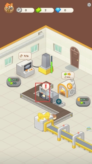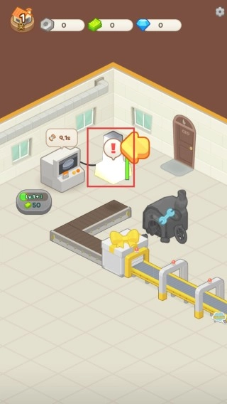 在初始的工厂界面中,找到带有【!】提示标识的设备并点击它,这是开启生产搭建流程的第一步。