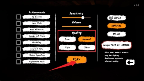 从low、normal、high、ultra这些模式里选一个,接着点击【play】按钮就可以了。