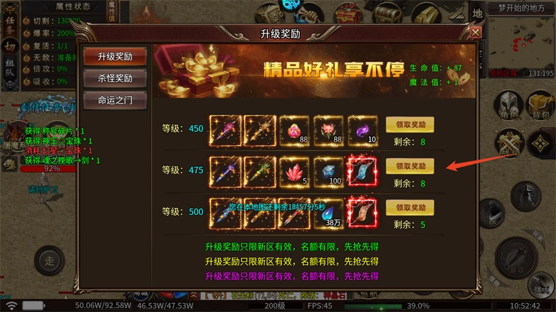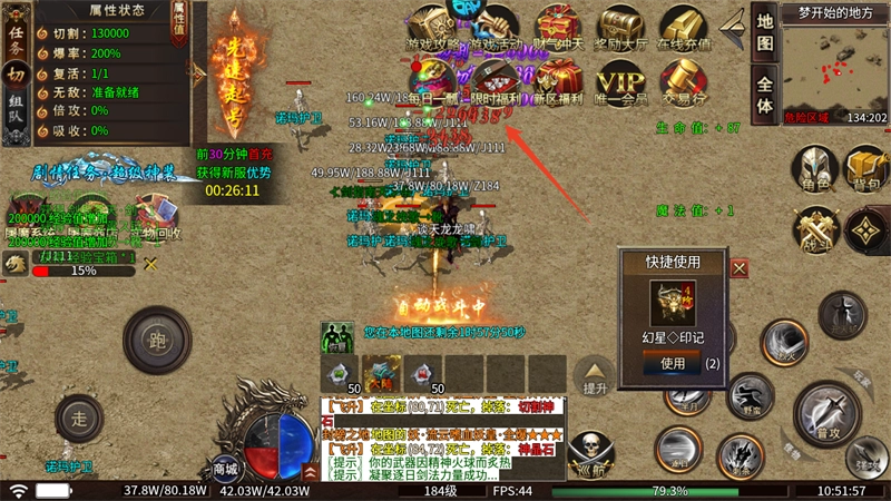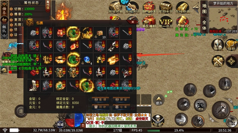 传世奇迹正版是一款经典单职业传奇正版游戏,福利十分丰厚,上线即赠刀刀切割、自动战斗、自动回收功能!之所以赠送这些福利,是因为游戏爆率极高,若没有自动回收,玩家可能刷不了几分钟就得回城处理掉落物品。而且掉落的装备多为极品,打怪过程中还能免费获取会员资格!