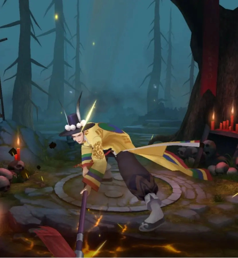 镇妖咒:召唤鬼影对目标区域发起攻击,能对该区域内的6名敌人造成相当于自身攻击力200%的伤害,同时让这些目标陷入麻痹状态,持续时间为3秒。