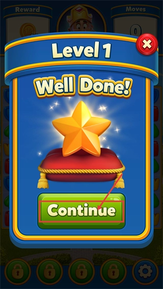 完成【Level-1】后,点击【Continue】按钮即可领取奖励并进入下一关。