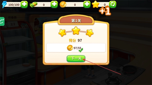 完成关卡目标后,点击下一关按钮即可进入后续关卡,持续提升餐厅的经营效率。