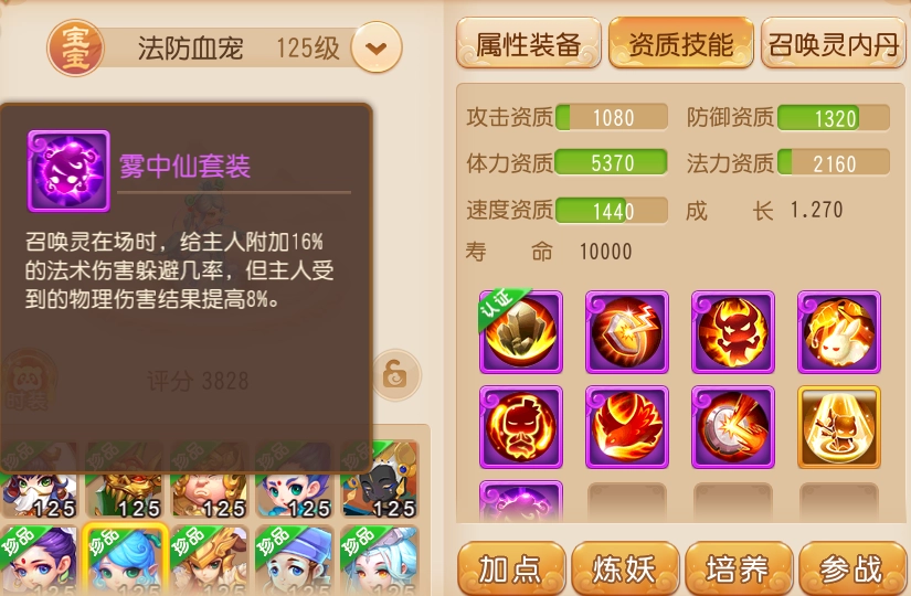 提到躲避能力,法防血宠“雾中仙”的法术躲避效果同样十分出色。当面对法系输出占主导的对手时,首发召唤一只雾中仙会是非常好的选择。