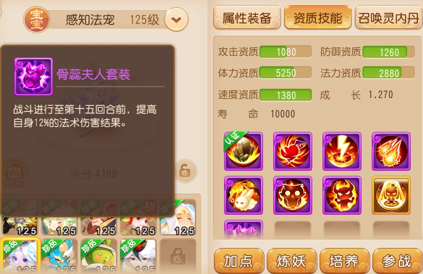 首发攻宠里有红鲤,那首发法宠自然也不能少了骨蕊夫人。和红鲤一样能在前15回合提升法伤的它,天生就是首发法宠的强劲候选者。