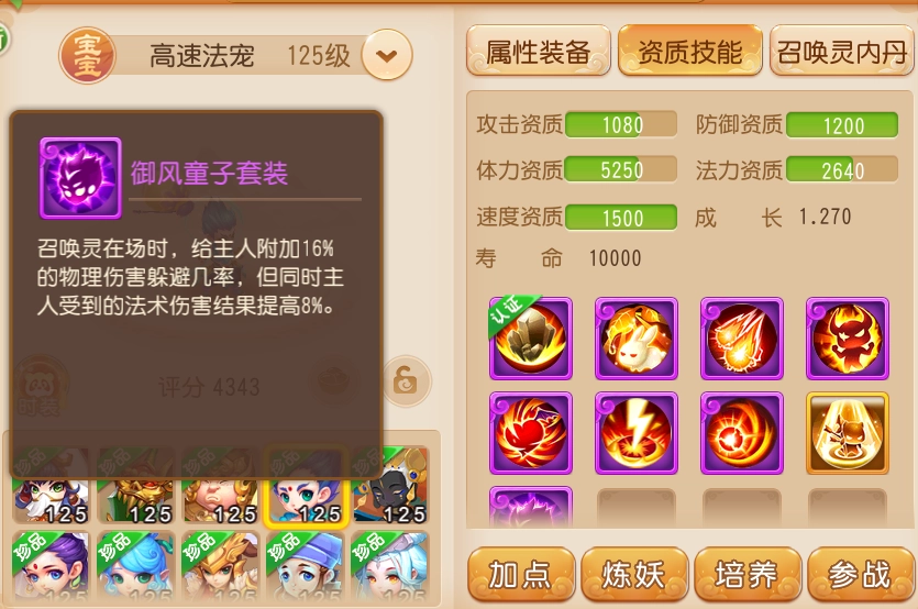 除了能为主人提供躲避效果外,御风童子自身的专属内丹“御风行”还为其自身赋予了躲避效果,这使得它的生存能力达到了相当出色的水平。