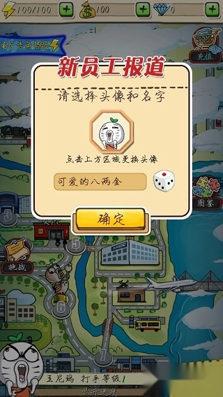 话不多说,接下来就让小编带大家走进这个满是恶搞趣味的街机世界。进入游戏后,系统会提示你输入名字和选择头像,这里完全可以按照你的喜好来,也能直接随机选择;等选好之后点击接受,就能正式开启第一关的挑战啦。