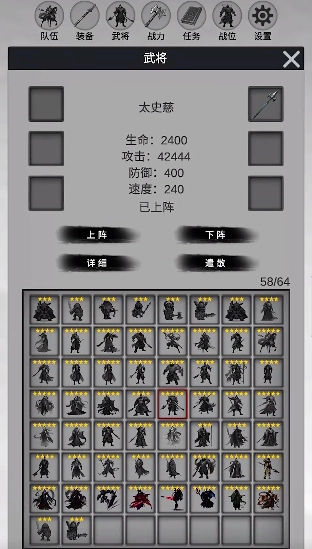 游戏为玩家提供了丰富多样的三国武将选择空间,每位武将都具备独特的技能与属性设定,玩家能够依据自身的策略需求,搭配出最具竞争力的阵容组合。
