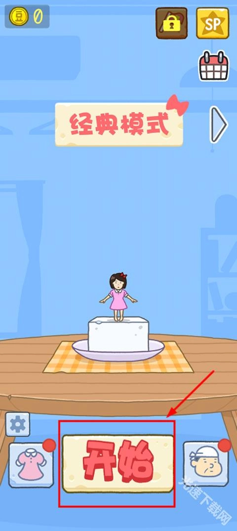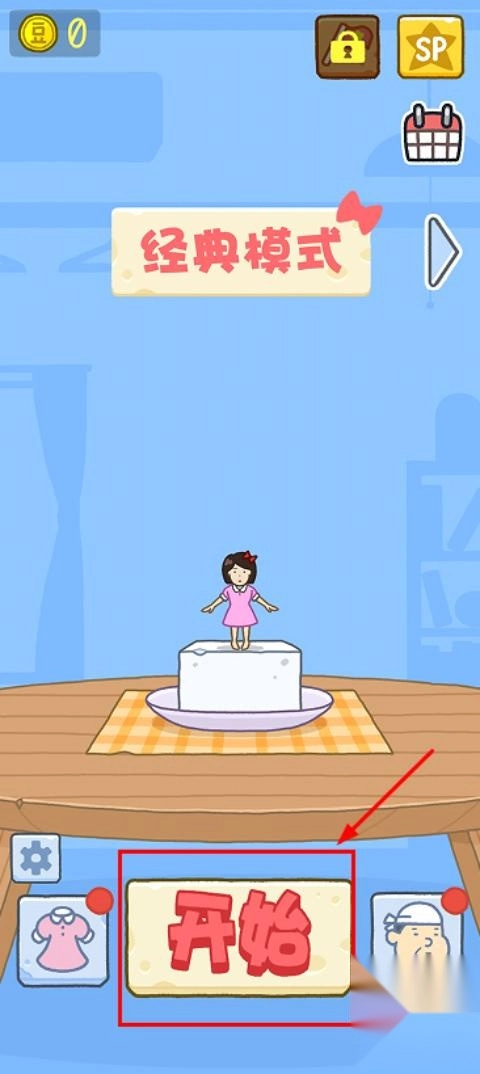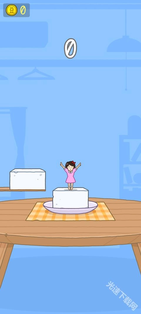 这里以经典模式为例,点击开始后进入游戏界面,玩家需要操控豆腐女孩通过跳跃的方式来堆叠豆腐。