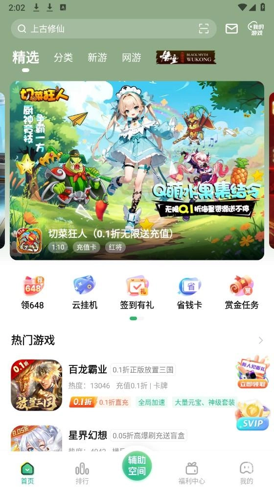 打开进入到本站的一折专区,首页为大家提供了精选内容、分类导航以及新游、网游等游戏类型。