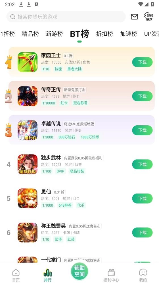 “排行榜”页面,为玩家提供了0.1折榜、精品榜以及新游榜等板块,方便大家及时掌握当下最热门的游戏动态。