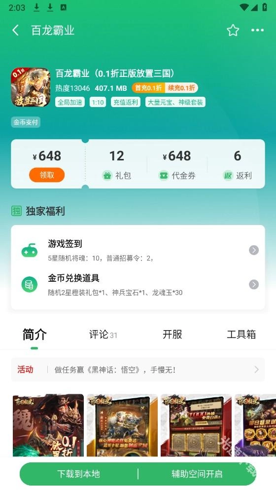 福利礼包:用户能够领取各类福利包,参与多样的游戏特色活动,从而在游戏里收获更多欢乐。