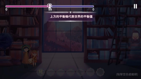 平衡条机制:上方的平衡条代表世界的平衡值,随时间流逝而减少,归零则游戏失败。