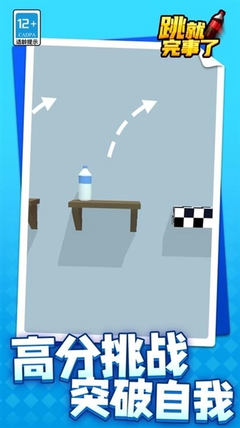《跳就完事了》是一款以跳跃闯关为核心玩法的休闲游戏,玩家的目标是操控瓶子通过跳跃抵达关卡终点。游戏的操作方式很简单:点击屏幕就能让瓶子弹起,点击时间的长短直接决定跳跃距离——短按适合微调位置,长按则可用于跨越较远的障碍。 游戏中的跳跃和落地机制严格遵循物理规律:斜坡会改变瓶子的滚动方向,弹性地面能让瓶子获得更高的反弹高度;需要注意的是,瓶子落地时必须保持直立状态,否则可能会翻滚倒地,导致游戏失败。此外,游戏内还设计了丰富多样的道具供玩家使用,这些道具能在高难度关卡中帮助玩家更轻松地跨越障碍。