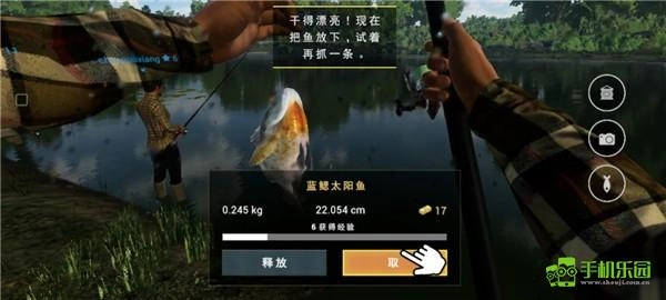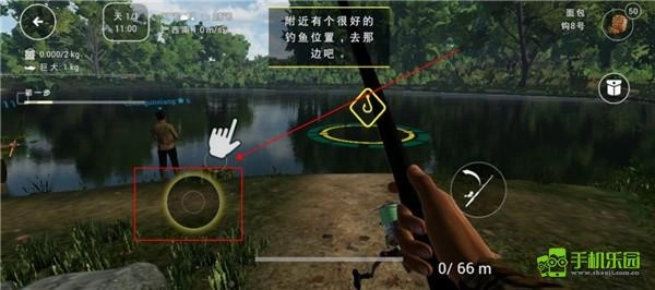 右侧的按钮用于抛竿,选好合适的钓鱼点后,点击该按钮就能轻松抛出鱼竿。