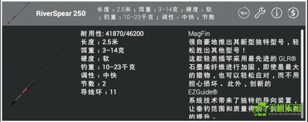 RiverSpear 250这款竿子是随蒙古地图一同推出的新品,它的诞生填补了此前缺少小饵搏大鱼专用竿的空白,适配10克以内的假饵,在抛投距离和钓重方面表现出色。