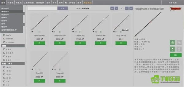聊完路亚竿,接下来和大家讲讲浮钓竿。浮钓竿主要有两种类型,其中一种是伸缩鱼竿,这里推荐大家选择7米的伸缩杆。因为竿身比较长,提鱼的范围也更远,作钓时能在7米范围内瞬间把鱼提起来,所以它也被叫做“秒提杆”。而游戏里这种秒提的设定,让玩家在有船的情况下,不用在意竿子本身的最大钓重限制,不管鱼的体型大小,都能直接秒提起来。