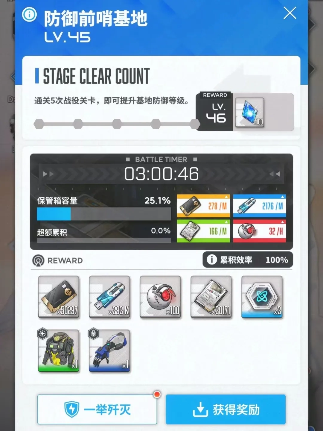 拦截战是每日必参与的玩法,也是获取装备的核心渠道。而且一次手动通关后就能挂两次机,操作起来相当省心;建议直接挑战当前能打的最高难度,即便只打到第一阶段,收益也会比低难度要高。