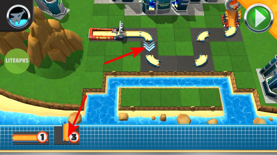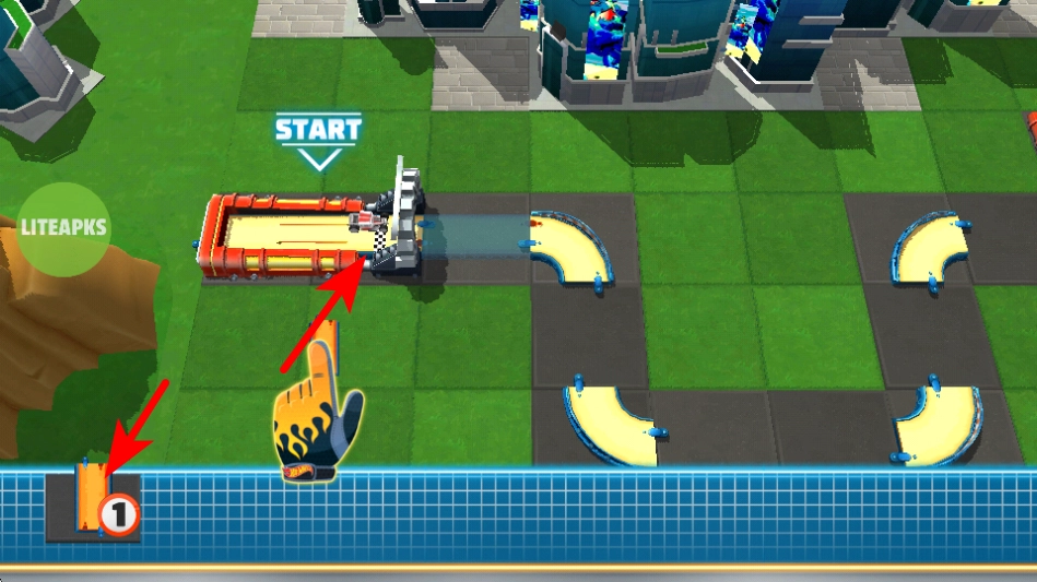 观察场景中的轨道组件分布及地形状况,把它们拖拽到已拼接轨道的末端接口位置,调整轨道走向来绕开障碍区域,从而延长行进路线。