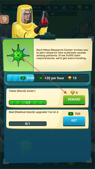 回到任务界面,找到REWARD按钮并点击,即可领取TableWardbuild1.对应的任务奖励。