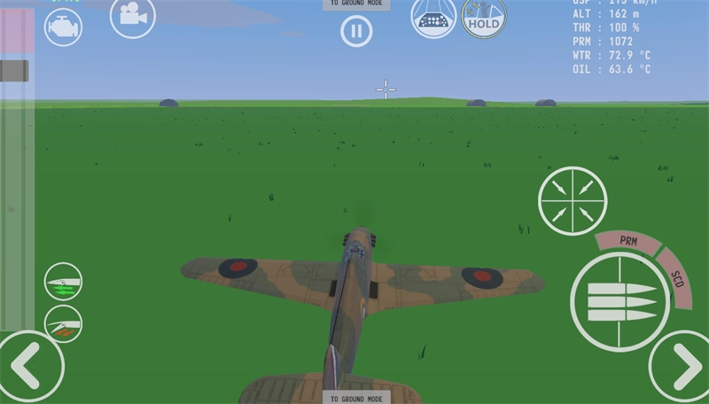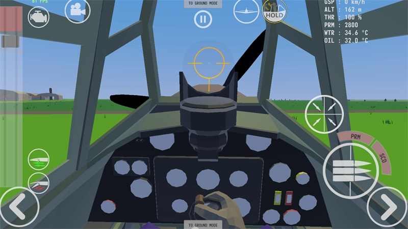 3、找到左上角像水龙头图案的按钮,点击它飞机就可以往前行驶了,还可以发射子弹,除此之外玩家还可以切换视角,坐在飞机上第一视角感受行驶飞机的感觉。