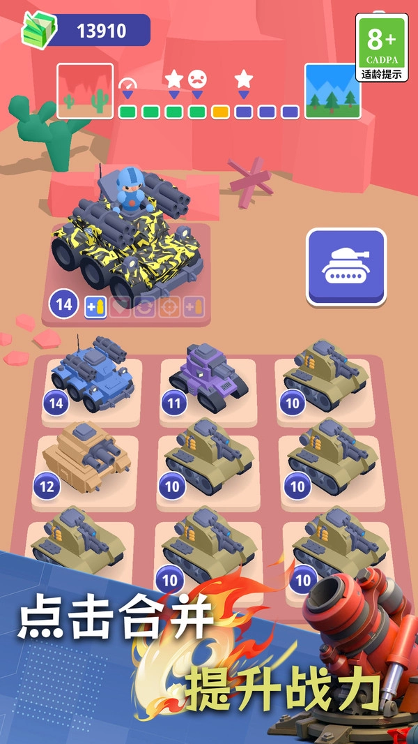 指尖神射手是一款相当专业的坦克射击小游戏!玩家可以挑选合适的坦克进行合并,全力击败所有敌人!并且这款游戏规则易懂,操作毫无难度,玩法十分简单,只需动动手指就能指挥坦克作战,这款轻松有趣的小游戏就是指尖神射手!