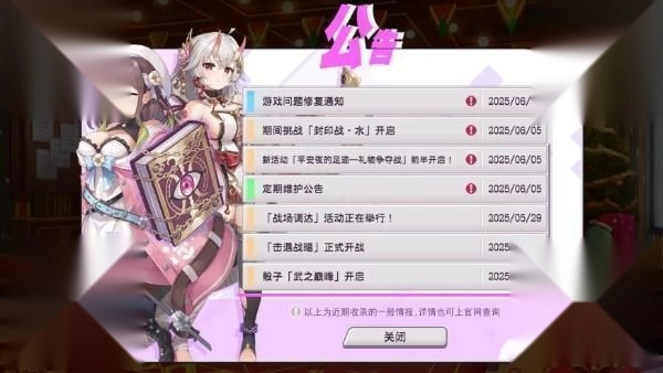 · 公告 游戏的更新详情、问题修复情况以及最新活动信息,均可通过公告栏进行查看。