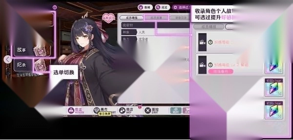 - SR和R品质的角色设有2条好感度相关事件,其中还包含特殊的“爱情事件”。