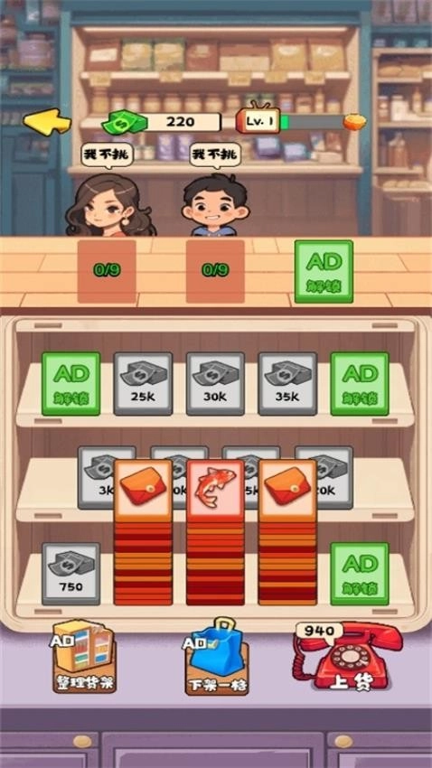 2、通过调整商品定价、补充货物库存、响应顾客需求来获取金币,进而实现店铺升级;