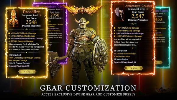 4、收集各种装备,提升角色属性,打造个性英雄。