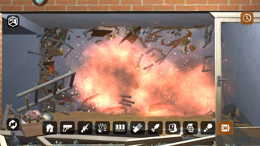 玩家能够借助锤子、斧头、手榴弹等多种破坏工具对房间进行破坏,并且不同工具所造成的伤害效果存在差异。