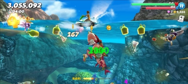 PS: 建议利用国际服三十天签到(可以调整日期快速获取)赠送的狂暴鲨群来刷钱,不然最右边的洞穴会无法进入,而且攒下来的钱尽量不要随意花费,钻石优先用来购买火箭包,金币优先攒起来解锁高阶鲨鱼,或者借助国服商店的bug刷珍珠。