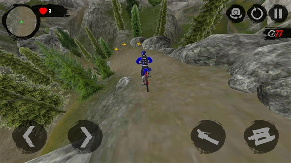 山地自行车速降是一款以极限运动为题材的竞速游戏,玩家将化身专业车手,操控高性能山地自行车,在复杂多变的山地场景中完成高速俯冲、跳跃特技等一系列挑战。游戏以真实物理引擎为核心支撑,精准模拟重力、摩擦力、惯性等现实物理因素,搭配随机生成的赛道与动态天气系统,为玩家带来极具沉浸感的速降体验。在画面呈现上,游戏运用3D技术打造出森林、火山、雪原等丰富多样的地貌景观,同时支持第一人称与第三人称视角的自由切换,进一步强化了玩家的临场感受。除此之外,游戏还设有车辆改装系统,玩家能够根据自身需求自定义车架、轮胎、刹车等部件,以此提升车辆性能,从而更好地应对难度更高的赛道。值得一提的是,每次挑战的赛道布局、跳台位置以及斜坡角度均为随机生成,有效保障了游戏的新鲜感。另外,游戏提供了多位风格独特的车手角色,每位角色都拥有专属的技能或属性加成,这些特性会对玩家的比赛策略产生直接影响。