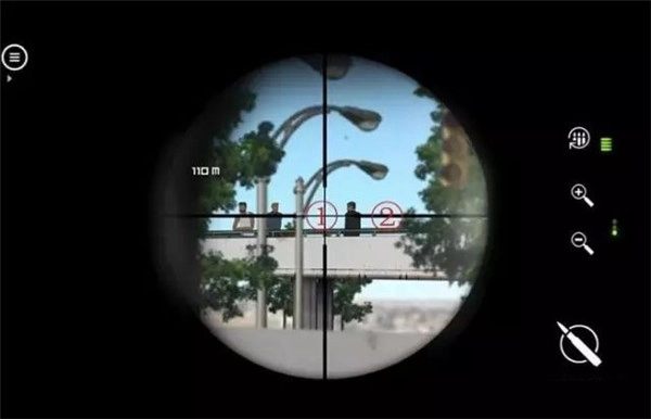 任务玩法:难度略有提升,因为律师是处在移动当中,一旦让律师移动至狙击镜头之外,则任务失败。建议采用预瞄准的方法,将准星先行放置在律师即将到来的道路上,一旦进入准星范围选择击杀即可。不清楚的小伙伴们可以参考下图小编给出的图示照片。