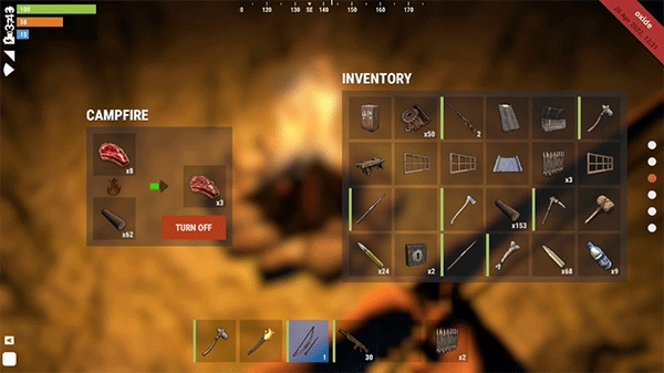 7、一开始别急着建家,毕竟每个服务器的地图都是随机生成的。所以开局我们得先四处探索,寻找物资刷新的地方,像大铁球、工厂、核电厂、卫星雷达、峡谷这些地方都有可能。这得看运气,说不定能遇到辐射区呢——比如我之前就走到大铁球那里碰到了。找到辐射区后,马上用石头砍10次树,收集100个木头,再捡地上和身上的“麻类纤维”,凑够30个布。接着打开背包做个睡袋,把它放到快捷栏里备用。