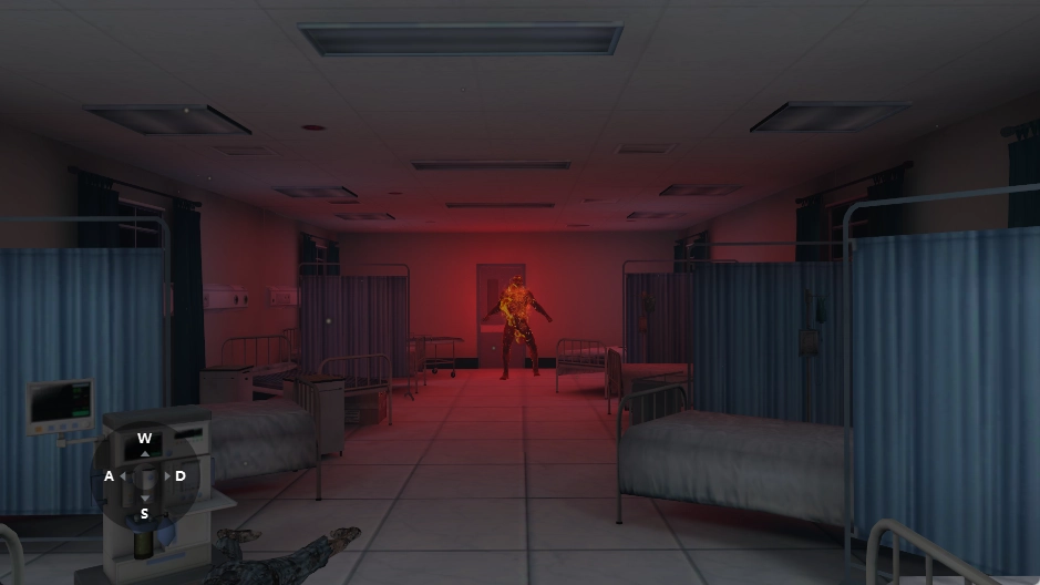 医院中潜伏着面目可怖的怪物,正面遭遇时若实力不足,可迅速藏身于柜内等遮蔽物中,静待危险远离。