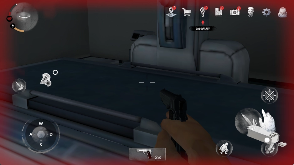 12、回到一楼后,我们打开房门,回到原来的房间。这个地方也是我们游戏的大本营。我们可以在这个地方升级武器。我们可以在垃圾桶上和旁边轮椅上的碎片中找到我们的手枪。