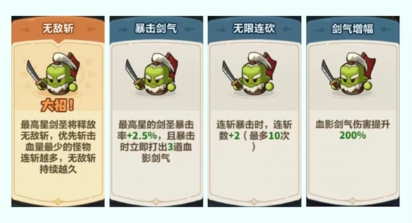 ① 需要剑圣扛起BOSS输出的大旗,解锁大招【无敌斩】后,推荐走暴击剑气流,相较于旋风,血影剑气能对BOSS造成更高输出。