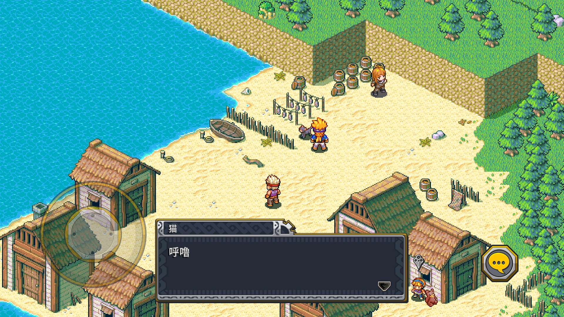 3、在可互动的对象附近,点击右侧的聊天按钮就能开展交流;
