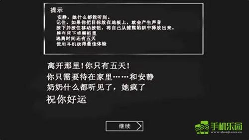 游戏刚开始玩家是在房子的第二层房子里面睡觉,然后醒来以后会发现房门紧闭。玩家自己是不能打开房门的,因此就需要老奶奶的帮助。游戏中起床以后会看到一个桌子,只要将桌子上的花瓶拿起来念动咒语,让后踢到桌子老奶奶就会迅速赶来,在此之前我们要躲在床底下或者柜子里面,以免被恐怖奶奶发现。