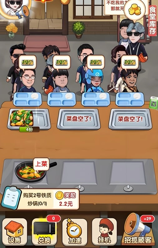 升级你的食堂,提升顾客好评率,还能获得额外红包奖励,这会帮你更快积累财富。
