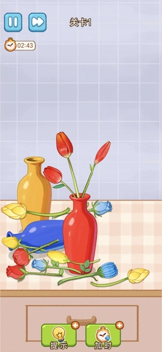 进入游戏之后,将下面不同颜色的花插入花瓶中。