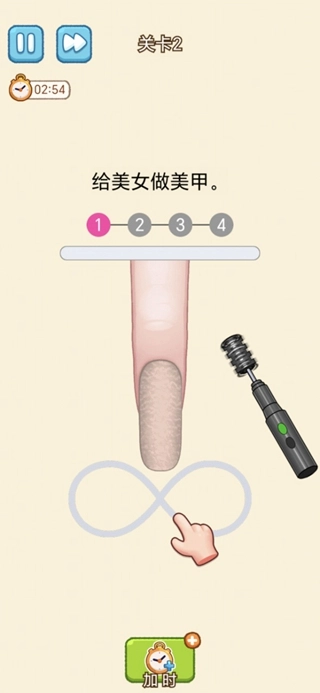 进入关卡2后,玩家的任务是为美女进行美甲,并且要在限定时间内完成这项任务。