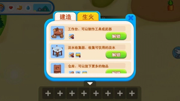 荒岛生存第一天,首要任务是搭建简易的庇护所和生起篝火,等确保了最基本的生存保障后,大家再分头去探索地图上的各类资源。