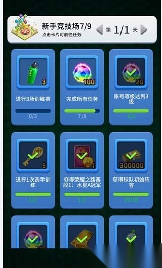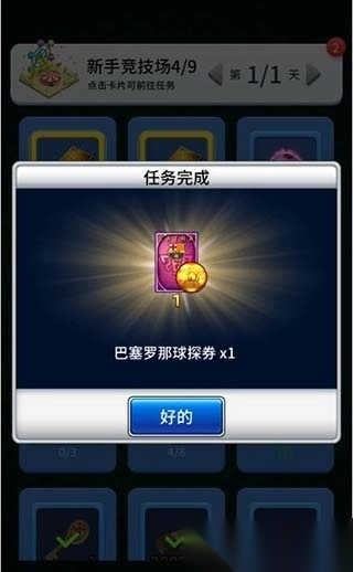 进入游戏后,直接打荣誉赛的第一级就行。等第一级通关了,记得去看看新手任务,这里会奖励几个五星巴萨90分的球员。另外,点击那个持续40多天的新手活动,里面有个“新手竞技场”,每天有8个任务,这些任务一定要先完成,完成后会送一个五星球员,其中就有90分的。第一个任务是荣耀之路的首次赛事,直接挂机自动打就可以。等把这8个任务都做完,就能拿到100彩币了。