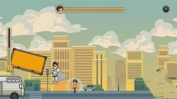 玩家化身成都超人,守护画面中央的女主角,使其免遭飞来障碍物的伤害。