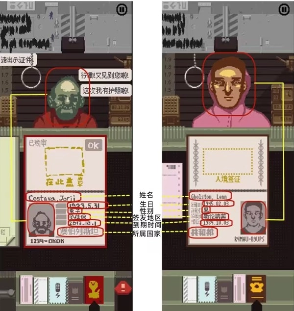 玩家拿到证件后,往往会先检查相貌、有效期这类一目了然的信息,可签发地区和所属地区这类拗口的内容却成了耗时又棘手的难题。虽说普通玩家能通过滑动底部工具栏来切换“记事本”和“证件桌面”的显示状态,但每个人都得走这么一套流程,终究还是挺麻烦的。