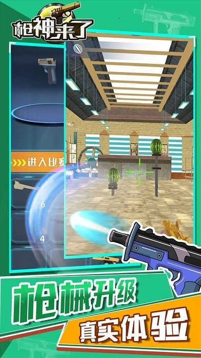 游戏刚开始时,玩家只能使用最普通的手枪进行射击。当射击任务一步步完成后,就可以解锁更多种类的枪支了。