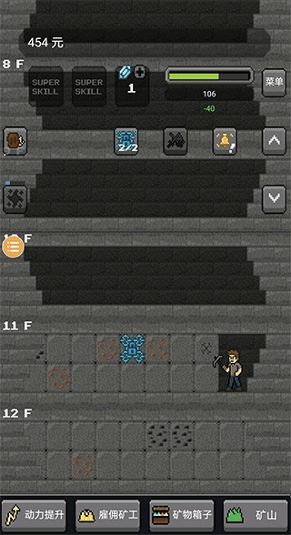 游戏画面是经典的像素风格,非常适合挖矿类游戏。
